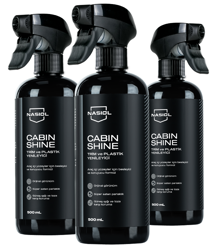 Araçların torpido, kontrol paneli, ön konsol, kapı kolu gibi bölümleri tozlanmaya, eskimeye ve solmaya yatkındır. Araç içindeki plastik, kauçuk ve vinil yüzeylerin deforme olmasını önlemek için bu yüzeyleri Nasiol CabinShine gibi özel olarak formüle edilmiş bir solüsyon ile korumak gerekir. Nasiol CabinShine ürününü yüzeyleri Nasiol TEM APC Pro ile temizledikten sonra kullanmanız tavsiye edilir.